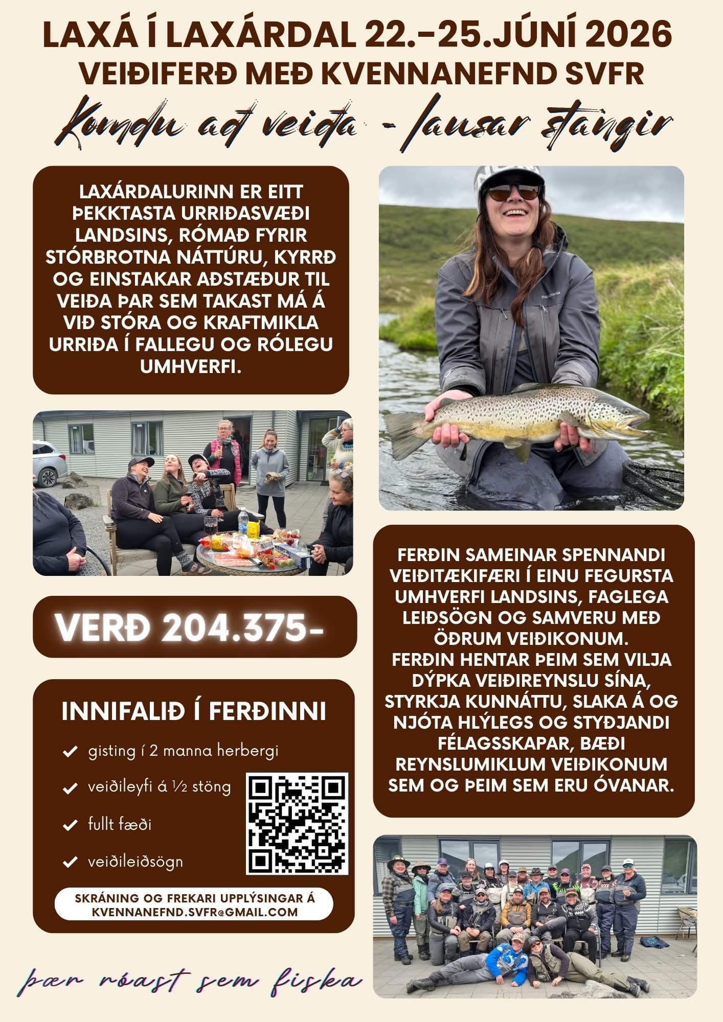 Þessi ferð hentar bæði þeim sem eru vanar veiðikonur og þeim sem vilja bæta við reynslu og njóta veiðinnar í góðum hópi.