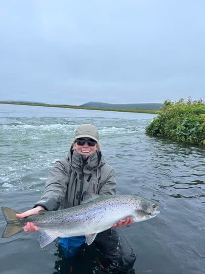 Meðallengd á skráðum fiskum var 54 cm í urriðanum en 73 cm í laxinum með stærstu fiskana 70 cm og 101 cm.
